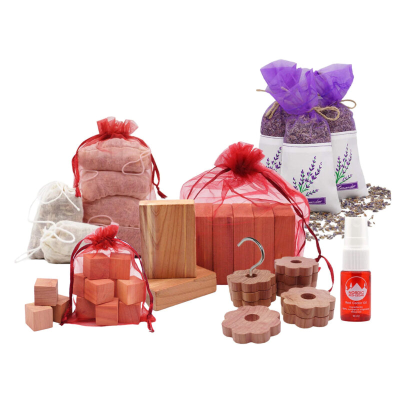 - Nordic Red® Sedertre Kuber 20-pk: Kan plasseres for eksempel i kommoder eller garderobeskap.